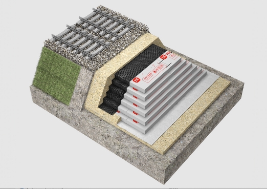 Экструзионный пенополистирол имеет очень низкий коэффициент теплопроводности, высокую прочность. Отличительная черта материала — устойчивость к деформациям, влаге и циклическим нагрузкам. Таким образом, материал становится практически безальтернативным решением при возведении железнодорожной инфраструктуры в условиях вечной мерзлоты и резких перепадов температур.