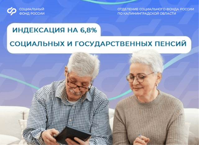 С 1 апреля социальные и государственные пенсии в Калининградской области проиндексировали на 6,8 %. Повышение коснулось более 21 тысячи жителей региона. После индексации средний размер социальной пенсии составил около 15 700 рублей. Пенсия детей-инвалидов выросла до 22 617 рублей. Социальная пенсия инвалидов с детства I группы увеличилась на 1200 рублей и теперь равна 18 848 рублей.